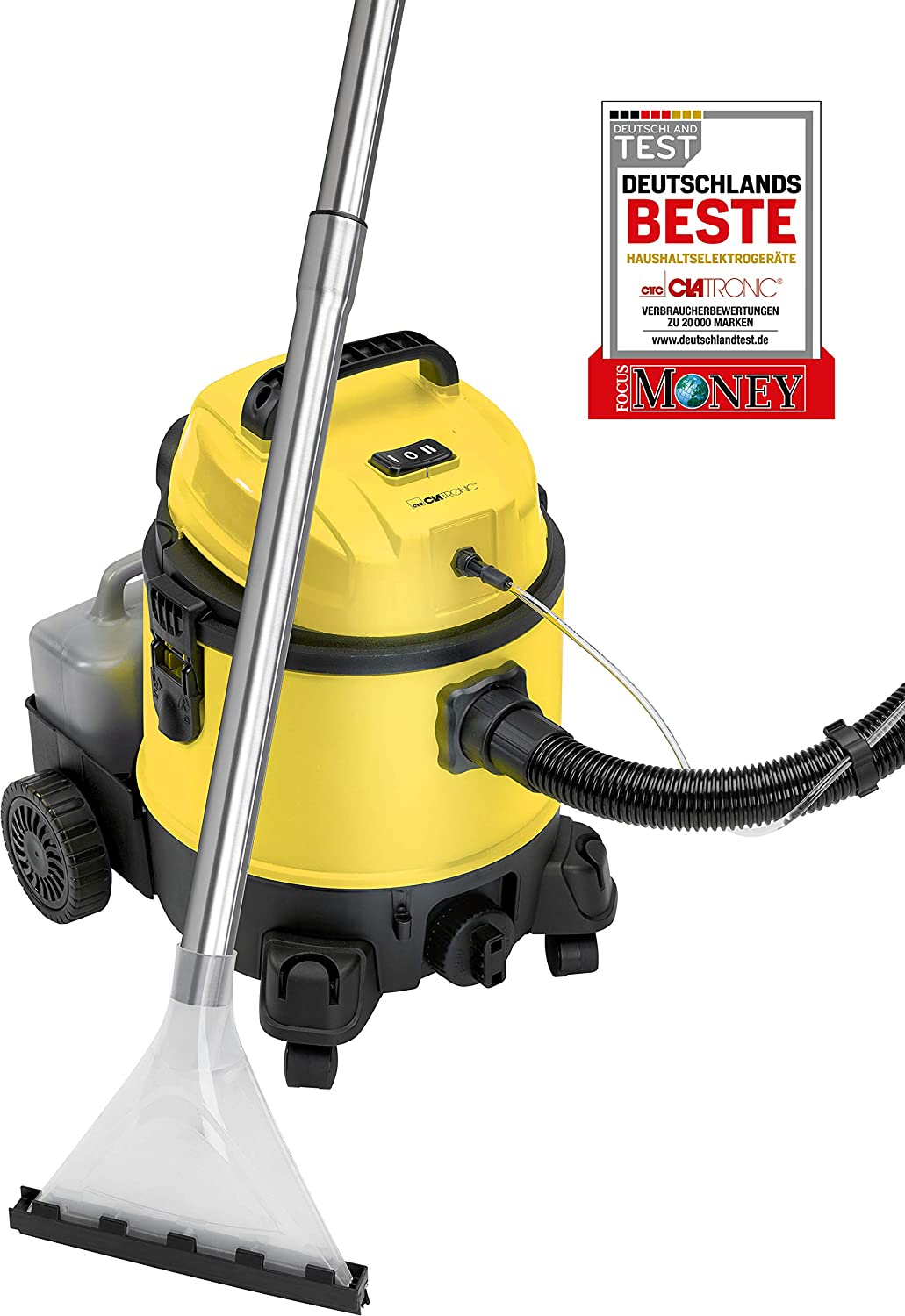 • 1 appareil/4 fonctions différentes – Nettoyez vos tapis et sols à partir de maintenant de manière professionnelle – avec l’aspirateur shampooing confortable BSS 1309 de Clatronic.